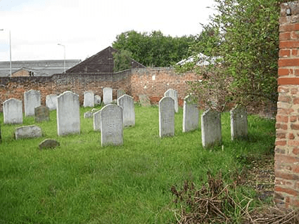 By the end of C18th, the Ipswich Jewish community had raised enough money to build a synagogue in Rope Walk, near the port. It was large enough to accommodate about forty people. They also bought land for a cemetery nearby in Fore Street. The cemetery is still there and has about thirty six headstones.